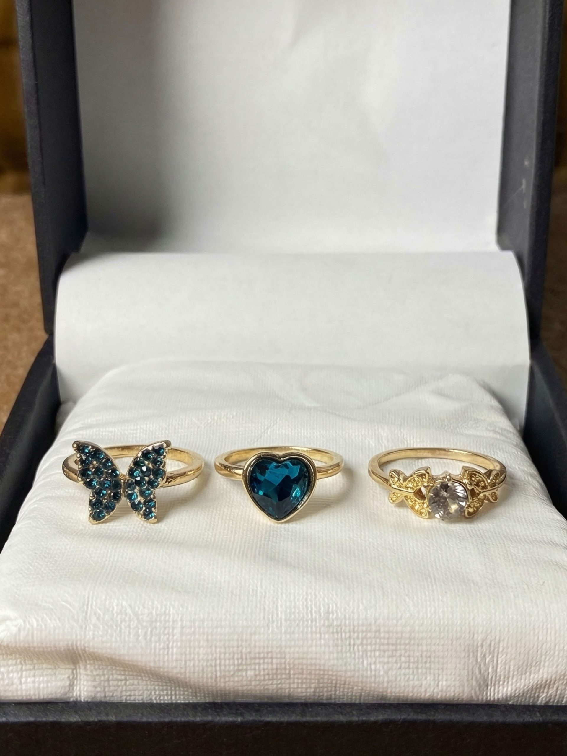Ye Ladies Crystal Rings aapke hathon ki khoobsurti barhane ke liye best hain. In mein Butterfly aur Heart jese trendy designs diye gaye hain jo gold plating ke sath aate hain. In par lage shiny crystals inhen aik luxury look dete hain. Ye rings party wear ya kisi ko gift dene ke liye aik behtareen choice hain.
